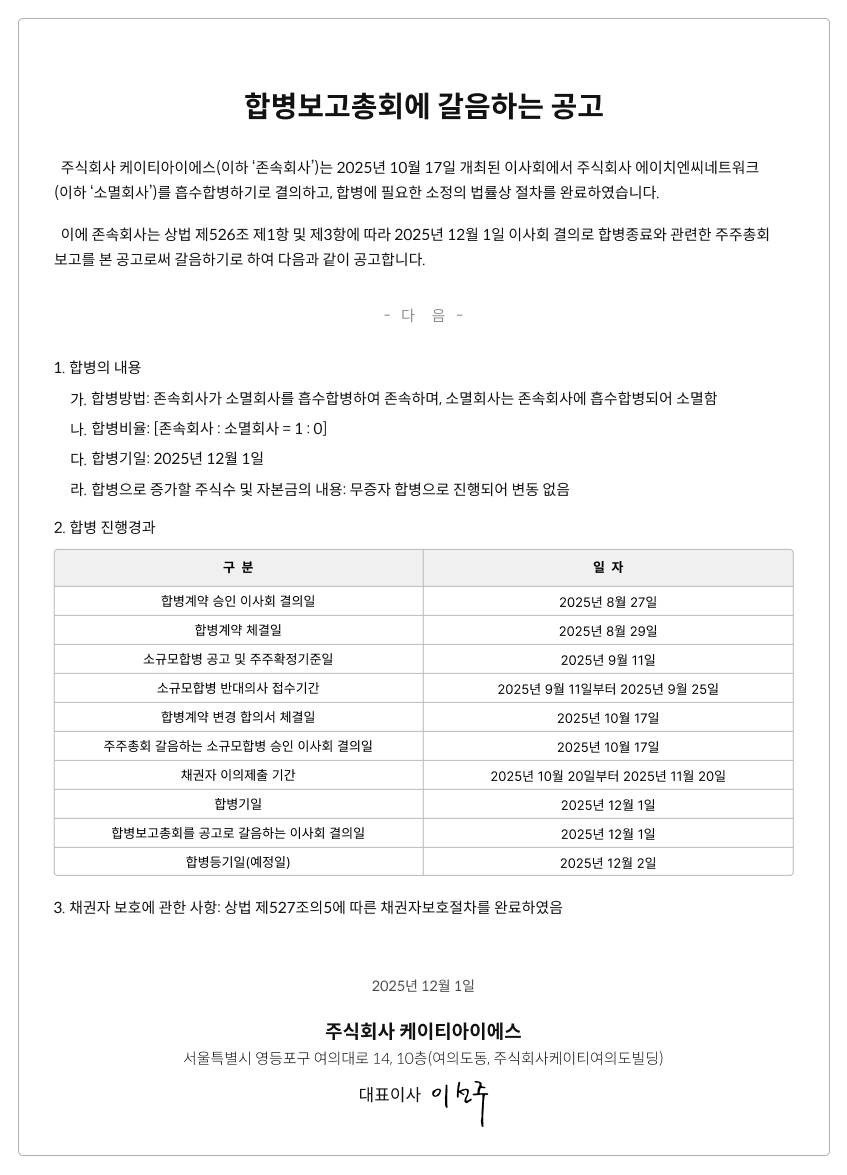 공고 합병보고총회에 갈음하는 공고 2025.12.01 합병보고총회에 갈음하는 공고.png 이전글 금융소비자보호법 제26조 금융상품판매대리중개업자의 고지의무 등에 따른 공지 2025.12.01 다음글 금융상품 판매대리·중개업무 위탁 확인증서(KB손해보험) 2025.11.21 목록으로